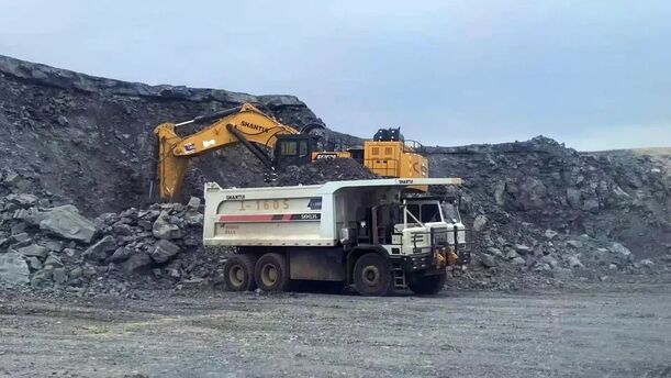 在新疆的廣袤戈壁上,某露天煤礦正書寫著能源建設的壯闊篇章。作為“疆電外送” 第三通道、“疆煤外運” 的重要煤源保障,這座東西長約 9.54 公里、南北寬約 10.77 公里的巨型煤礦,年產能達 4000 萬噸,是新疆能源戰略布局中的關鍵一環。而在這片氣候嚴苛、工況復雜的礦區,山推 SKH135-X 甲醇增程寬體自卸車憑借硬核實力,成為了重載運輸的 “明星選手”。