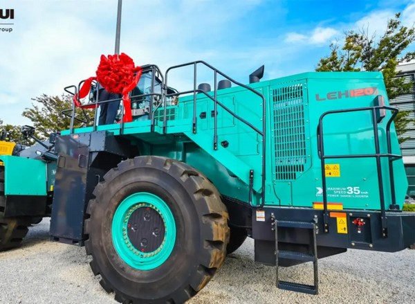 本次發布的另一款明星產品——LEH120混合動力輪式裝載機,作為首款12噸級混動機型,實力同樣亮眼。機身采用高強度箱型前后車架結構,抗沖擊耐高載,不僅擁有優異的燃油效率,還搭載可穩定保持高效轉速的發動機,搭配先進液壓系統,實現高效作業循環。