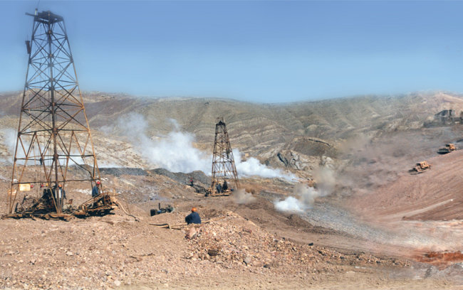 硫磺溝火區(qū)是“新疆煤田滅火規(guī)劃”確定的8大重點(diǎn)煤田火區(qū)之首,每年燃燒排放出一氧化碳、二氧化硫等各種有害氣體超過10萬噸,煙塵約4萬噸。對硫磺溝火區(qū)的治理每年可減少176.48萬噸煤炭資源的損失,為了確保國家15億噸優(yōu)質(zhì)煤炭的安全,同時(shí)恢復(fù)植被面積202.21萬平方米。山推50余臺220馬力推土機(jī)參加了滅火治理。硫磺溝綿綿百余里,經(jīng)過4年的治理,撲滅了百余年的煤田火區(qū)。