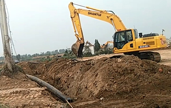 國內某城市施工排水溝鋪設項目,使用山推系列挖掘機進行排水溝挖掘工作,山推挖掘機以挖掘施工速度快、質量性能優異,故障率低的優勢,成功入駐項目施工隊。