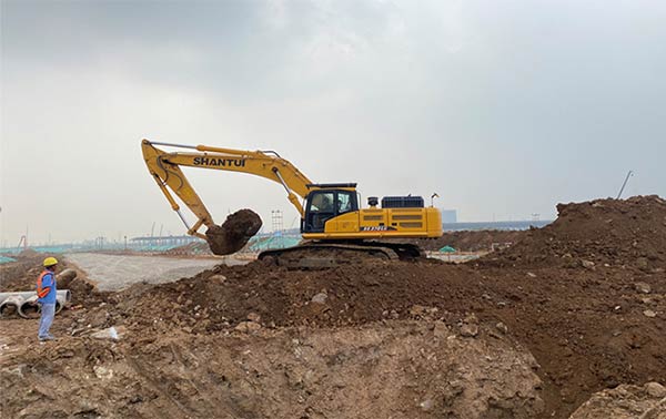 某大型建筑工地,成套采購山推SE245LC、SE370LC等挖掘機進行挖方、填方等作業,山推設備以動力強勁、質量品質高、效率高、故障率低贏得該工地青睞。
