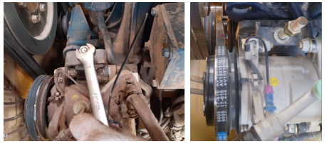 答:壓縮機皮帶打滑導致的吱吱響,一般是因為皮帶漲緊不足引起的,可以通過調整皮帶漲緊度解決。如有必要對打滑嚴重的皮帶進行更換。(務必發動機熄火后進行此操作)