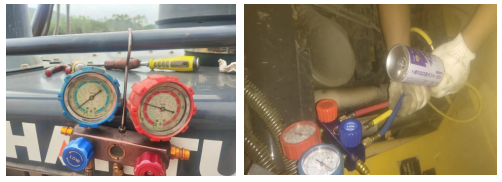 答:首先說明,壓力不是越高越好。充注過程中觀察表組壓力表,高壓值在1.5-1.7Mpa ,低壓值在0.20-0.25Mpa的區間內,表明制冷劑充注工作完成。