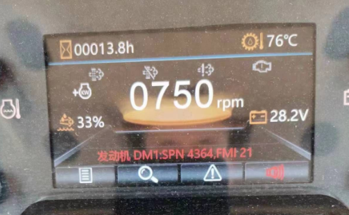 問題一:我新買的車,中午干完活熄火后,關閉了電源開關。下午再去干活出現了報警信息SPN518153、FMI11.原因是什么?如何避免?