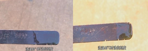 80 ℃時油位應在上刻度“HOT”及中間刻度之間。